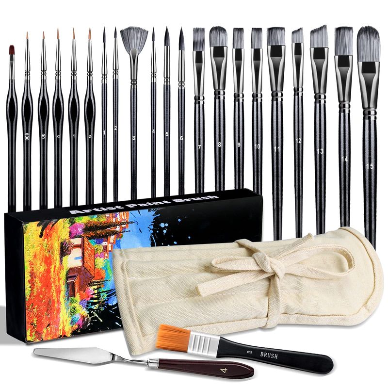 Aottom 23 pcs Paint Brush Set- 16 Different Shapes Paint Brushes +6 Pcs Fine Detail Paint Brush Set + 1 Mixing Knife with Organizing Case
