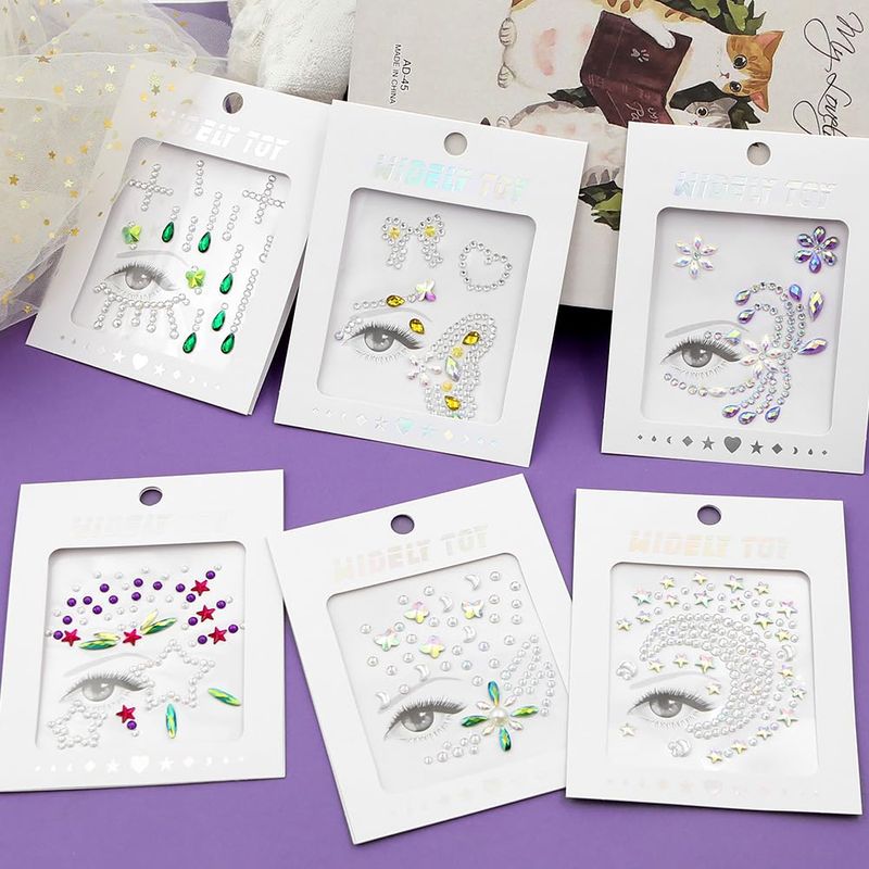 6 Pcs Face Gems,Crystal Half Face Jewelry Stick...
