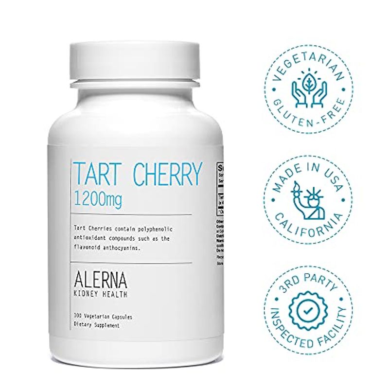 Alerna Kidney Health Tart Cherry Extract 1200 mg, 100 Vegetarian Capsules - Gluten Free, Non-GMO