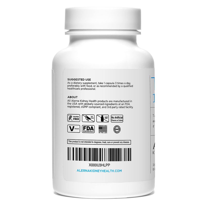 - All Alerna Kidney Health products are manufactured in the USA with globally sourced ingredients at an FDA registered, cGMP compliant, and 3rd party rated facility.