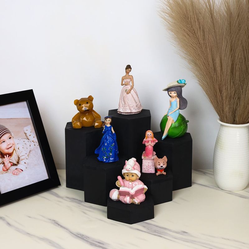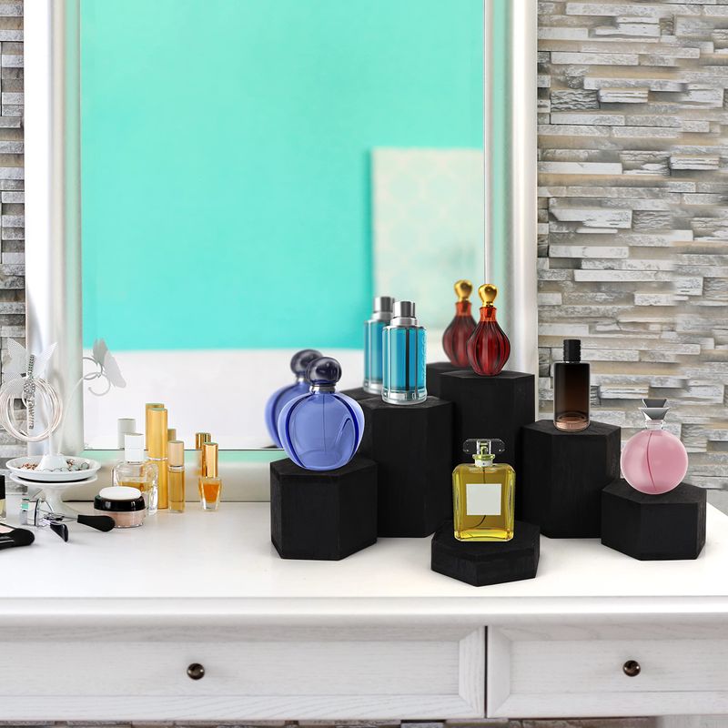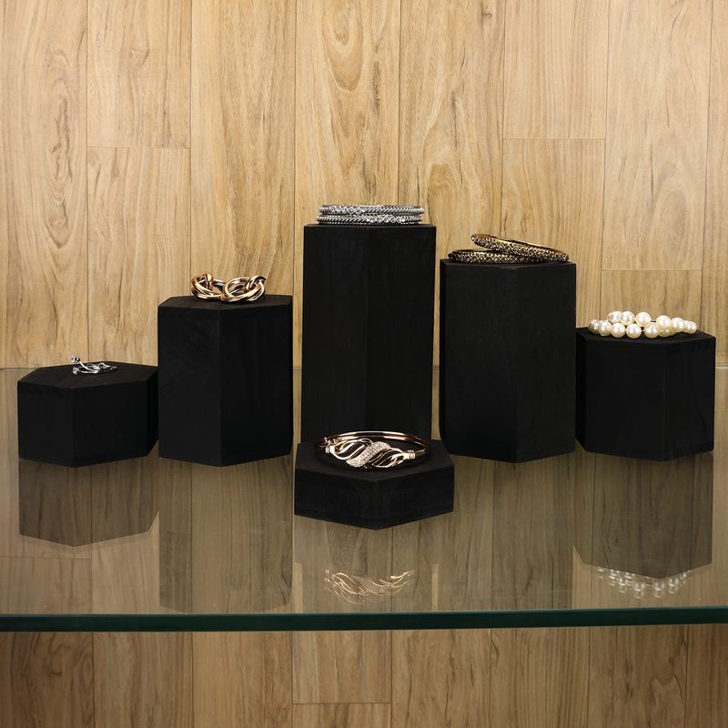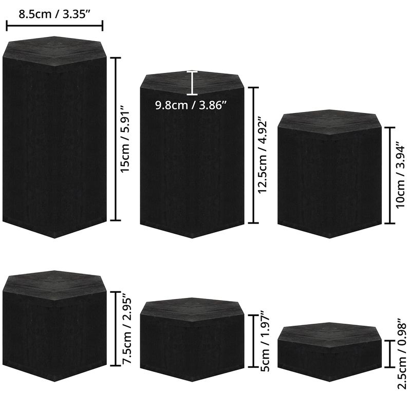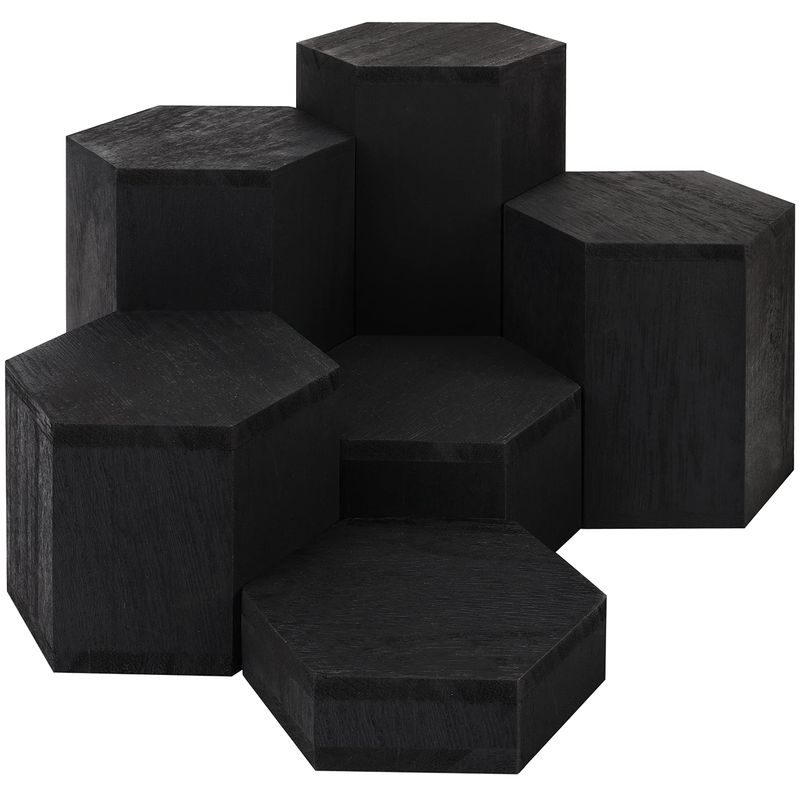 BELLE VOUS 6 Pack of Black Wooden Hexagon Displ...