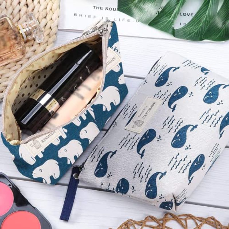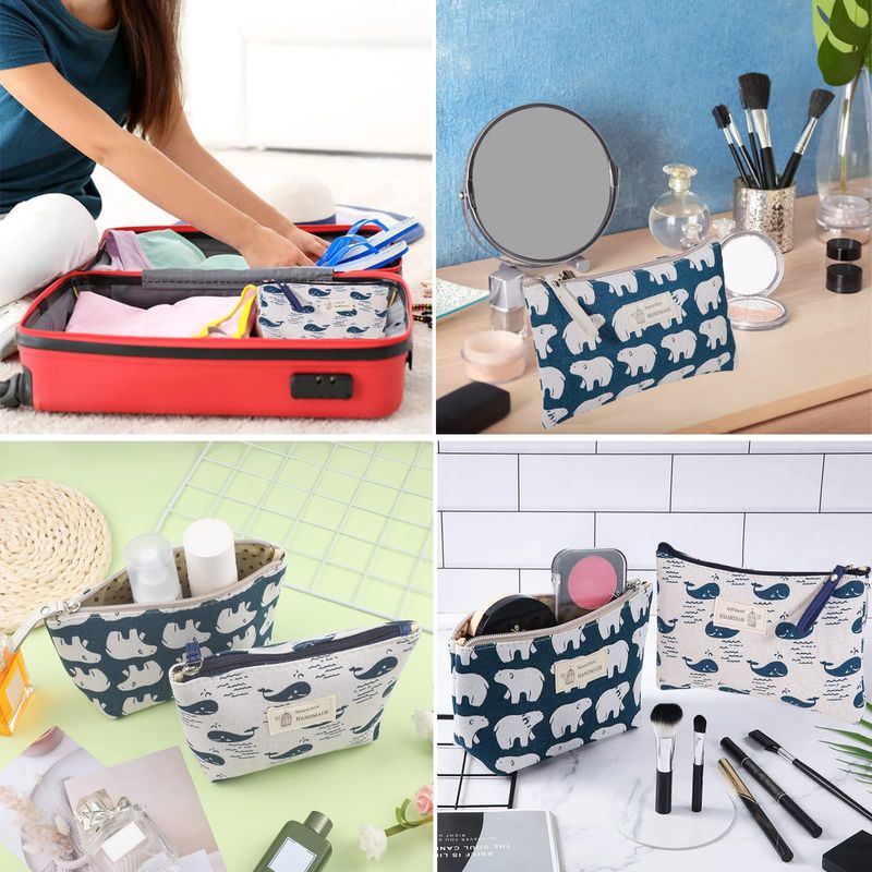 canvas cosmetic bag, 2 pcs multi-functional canvas travel pouch, animal makeup bag pouch with zipper