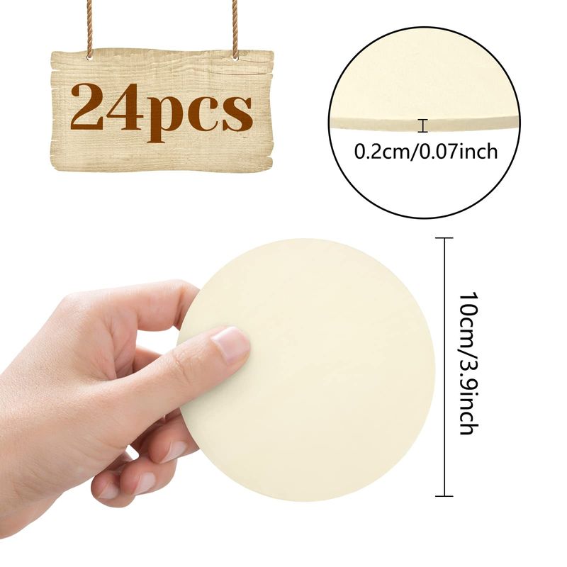DOITEM Wooden Circle, 24 Pcs 10cm/4inch Unfinis...