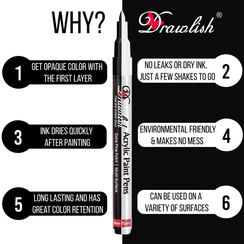 Drawlish Acrylic Paint Pens, Black & White Pen ...