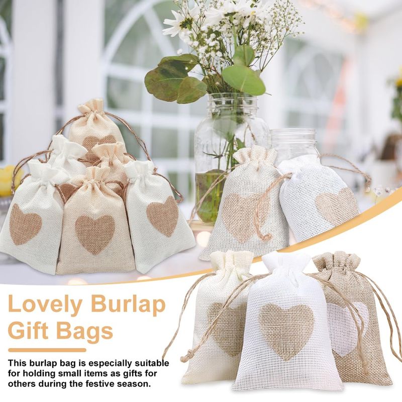 HMIEPRS 40 Pcs Burlap Bags, Linen Drawstring Ba...