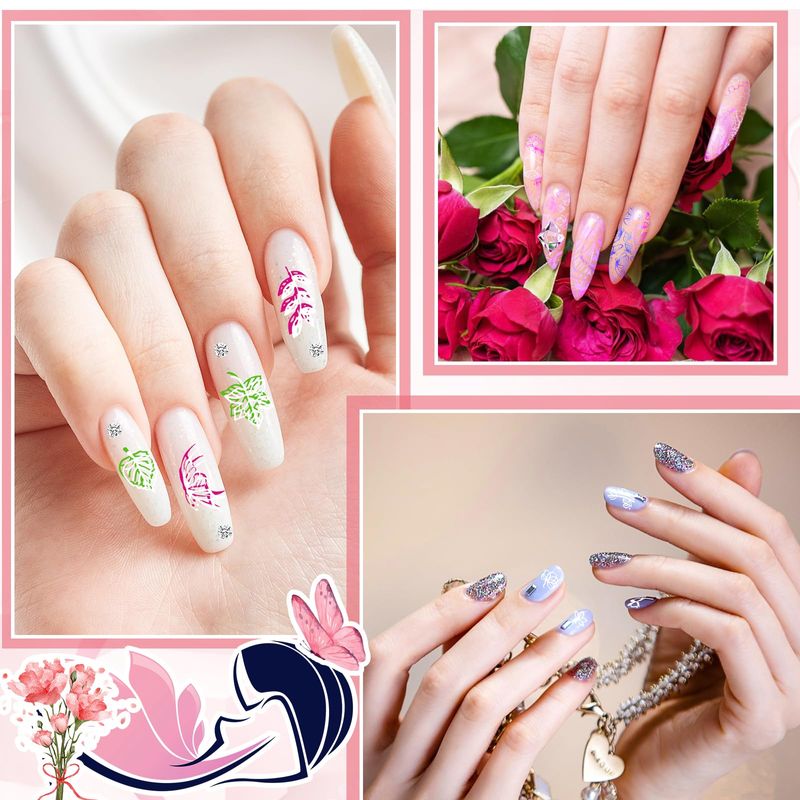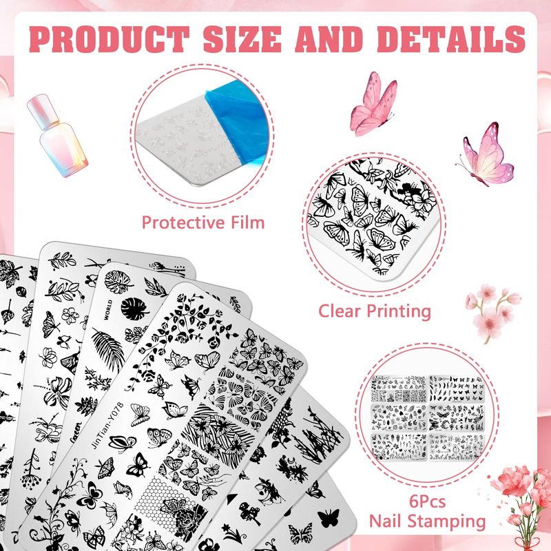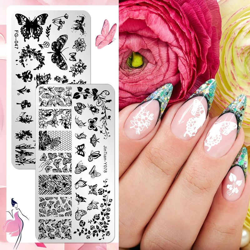 JSRQT 6Pcs Nail Art Stamping Plates, Butterfly ...
