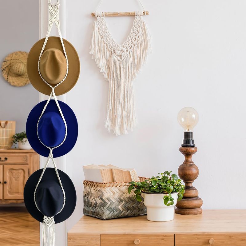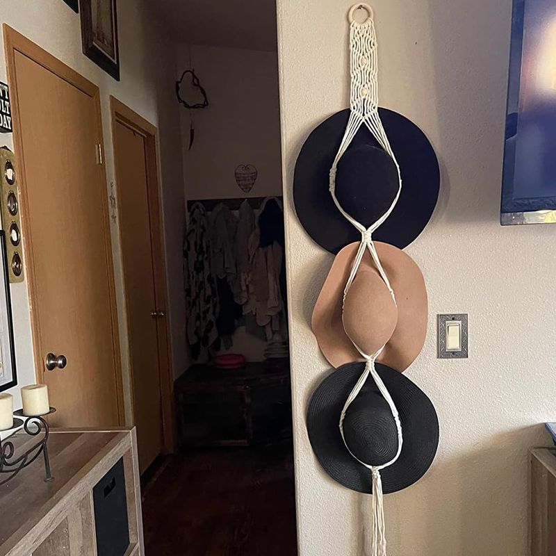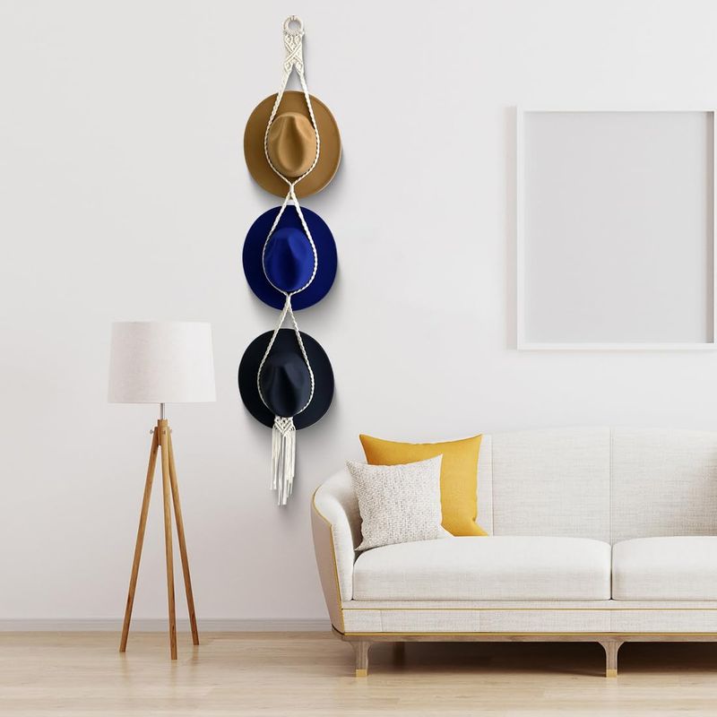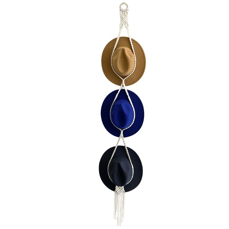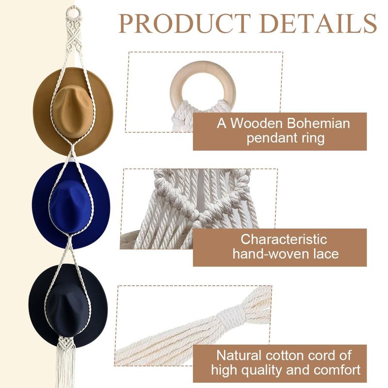 LAOJU Macrame Hat Rack, Hat Hanging Holder Wall...