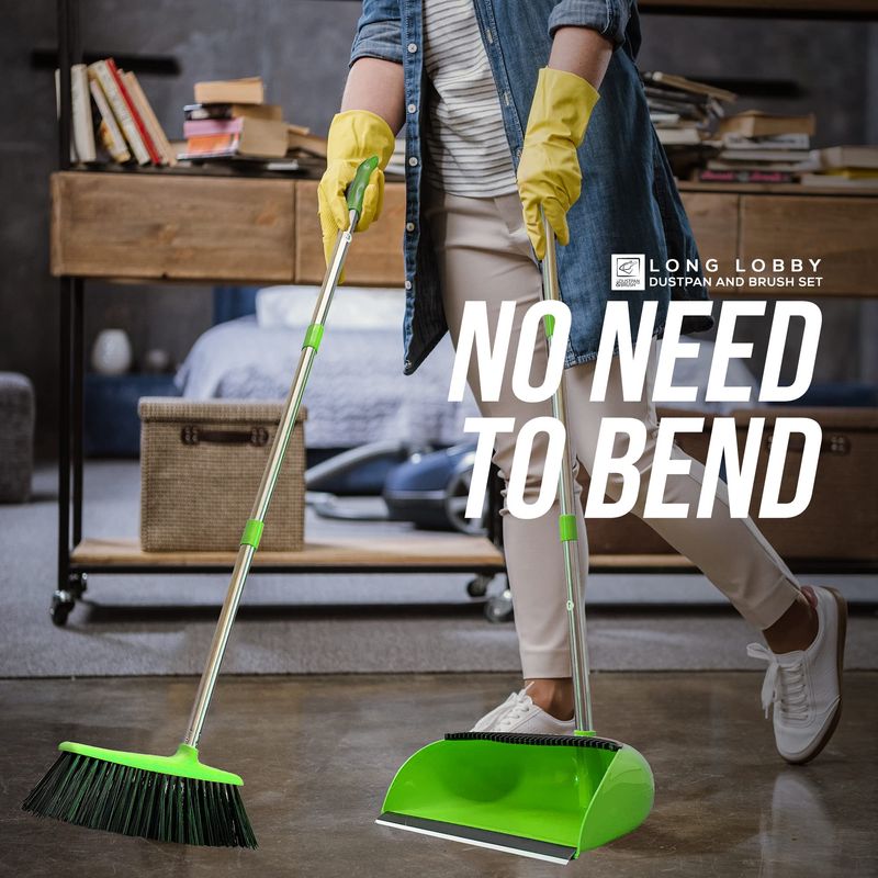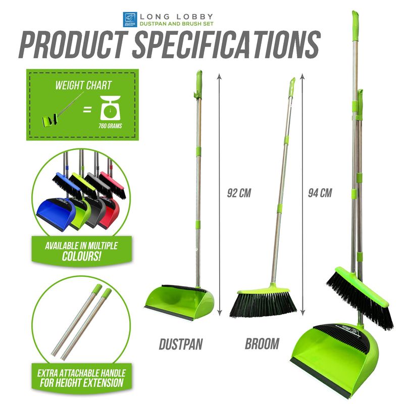 Long Handled Dustpan and Brush Set Lobby Dust P...