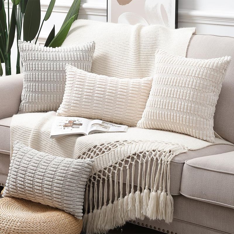 Madizz Pack of 2 Boho Striped Corduroy Throw Pi...