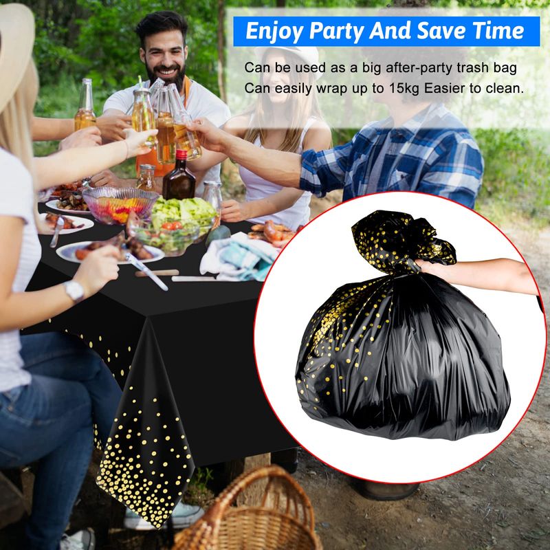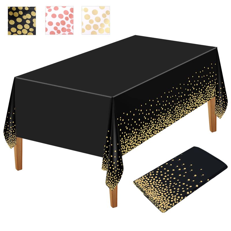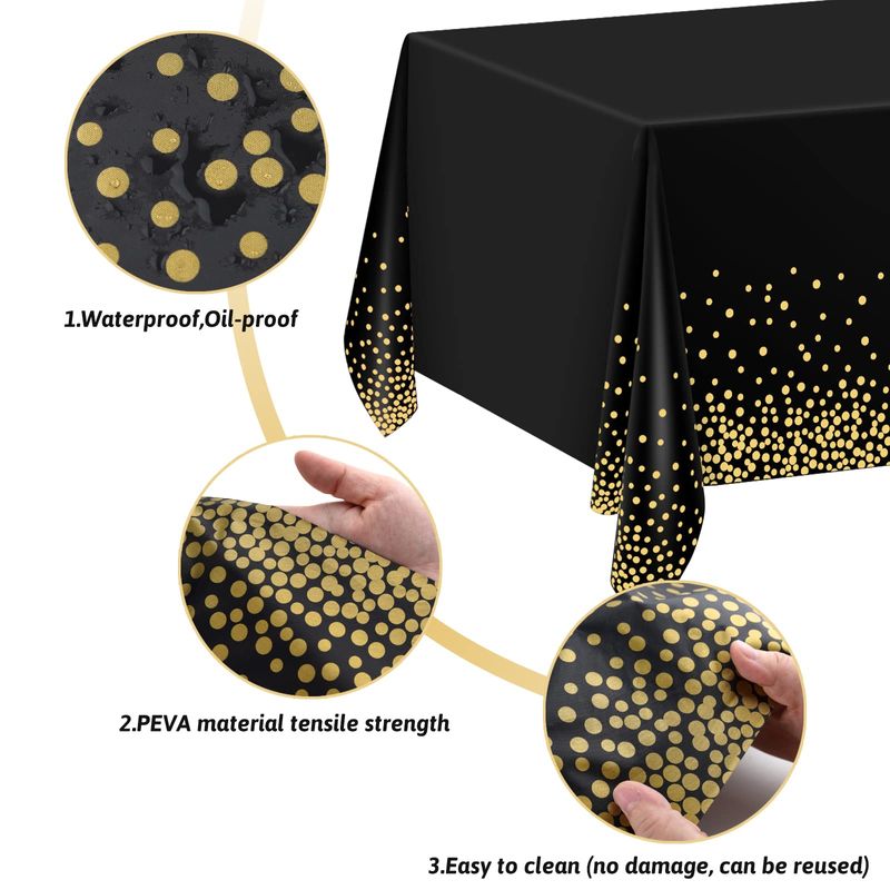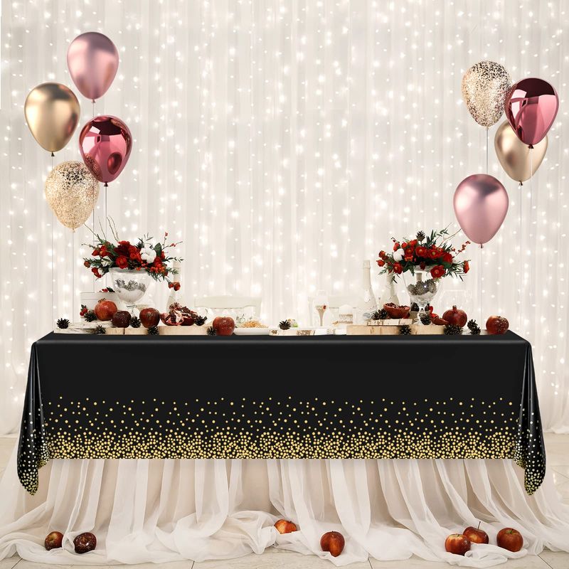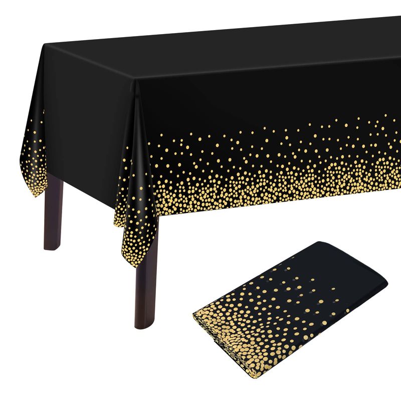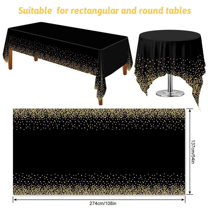 NEBURORA 1 Pack Black and Gold Party Tablecloth...