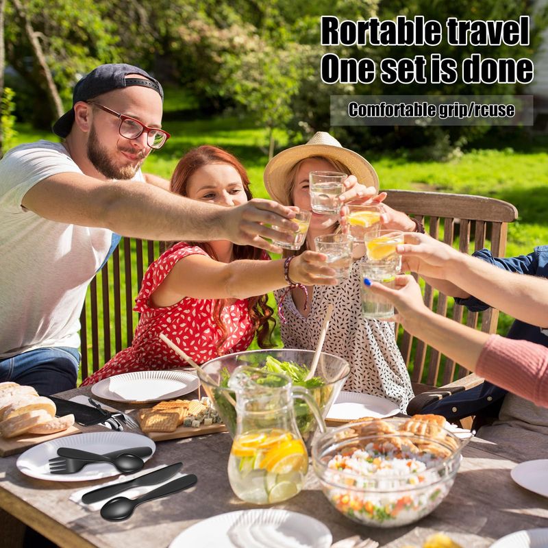 Specifications: Color: Black Material: stainless steel Dimensions: as the picture shows Package includes: 1 x knife, 2 x spoon 1 x fork 1 × bag Features: 1. Made of high-quality stainless steel, smooth edges, mirror surface and ergonomic shape, reusable and durable, 2. These camping cutlery sets and lunch boxes can be washed with water or put in the dishwasher, easy to clean and no residue. 3. Equipped with a storage bag, it takes up little space and can be easily put into a backpack, handbag or suitcase. 4. Suitable for daily use, essential items for camping, outdoor cooking, hiking, picnics, family trips and dining on the go.