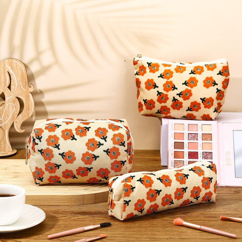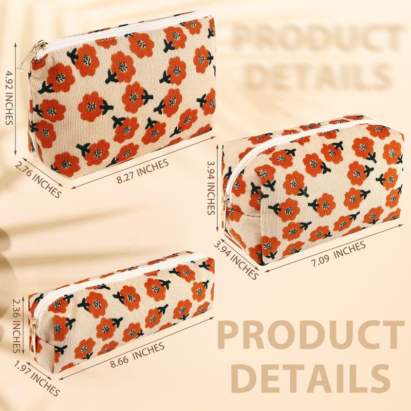 Photect 3 Pcs Floral Makeup Bag Corduroy Small ...