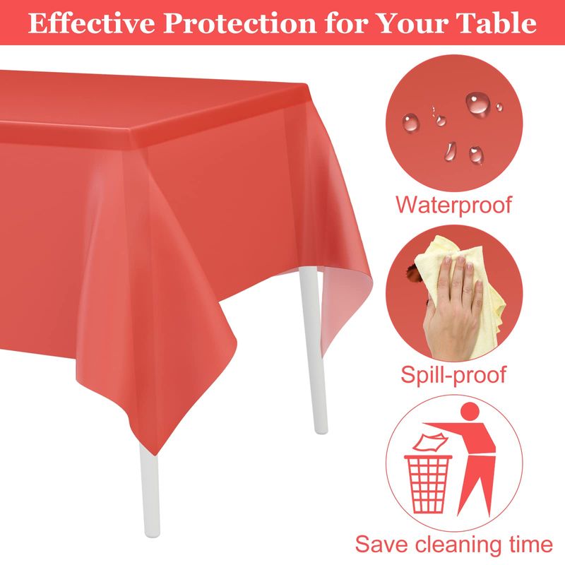 PLULON 2Pcs Red Tablecloth Plastic Table Cover ...