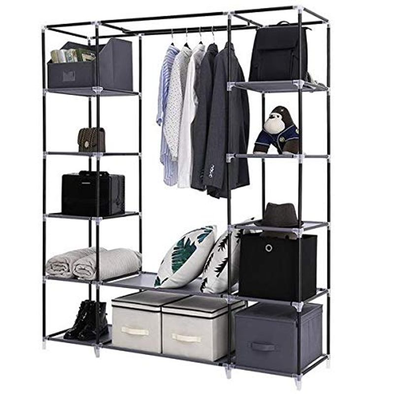 Our 69" Portable Closet Storage Organizer Clothes Wardrobe is Made from Selected Non-Woven Fabric Cover, High Quality Steel Tube and PP Plastic Connectors, Which Will Durable and Meet Your Long Term Storage Needs. The Size for The Clothes Wardrobe Makes it Suitable for Organizing Your Small Rooms and Walk-In Closet. Movable Improved Clothes Hanging Rod and 12 Storage Shelves Offers You Enough Space Both for Your Longer Outfits and Folded Clothes. Zippered Dustproof Cover Offered to Keep Your Item Away from Dust and Water-Proof Fabric Tiers are Easy to Clean. It Will Be Great Convenient and Functional. Do Not Hesitate to Buy One!