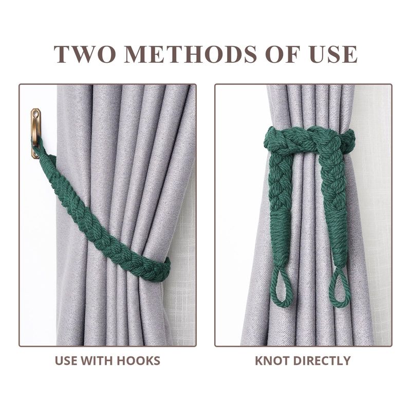 • 🔥【WIDE APPLICATION】The total length of our cotton rope curtain straps is 23.5 inches. The length and binding method can be adjusted freely according to the thickness of the curtain. It is widely used in curtains in different places such as bedroom, living room, dining room, bathroom, kitchen, office, courtyard and so on. Different colors of drape tiebacks adorn your curtains, which can change different styles, giving the curtains a unique charm