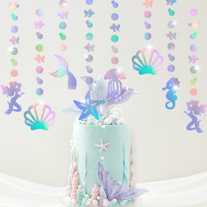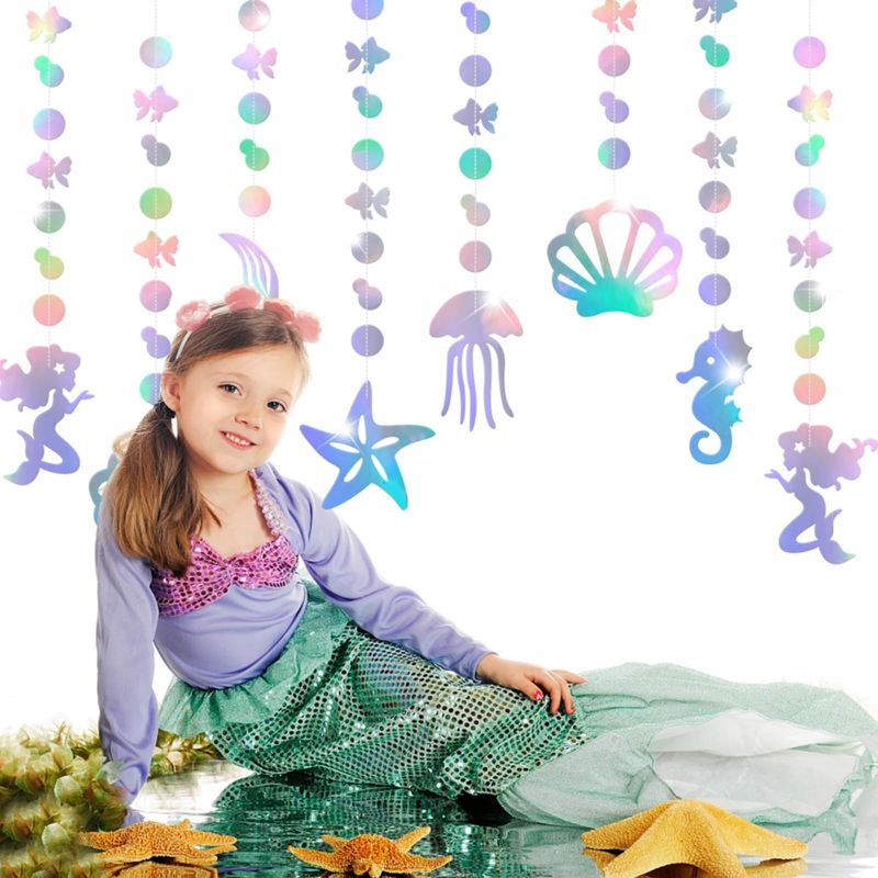 1.Our mermaid party decorations are colourful with mermaid shell starfish jellyfish seahorse.