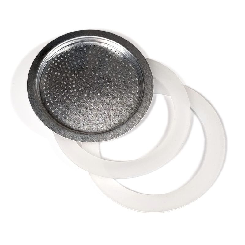 ☕ A stainless steel filter ☕Two food grade silicone seals (better solution than rubber) ☕Compatible with Moka of various brands ☕Available in sizes 1/2 cup, 1 cup, 2 cups, 3 cups, 6 cups and 9 cups ☕ Give a new boost to the taste of your espresso