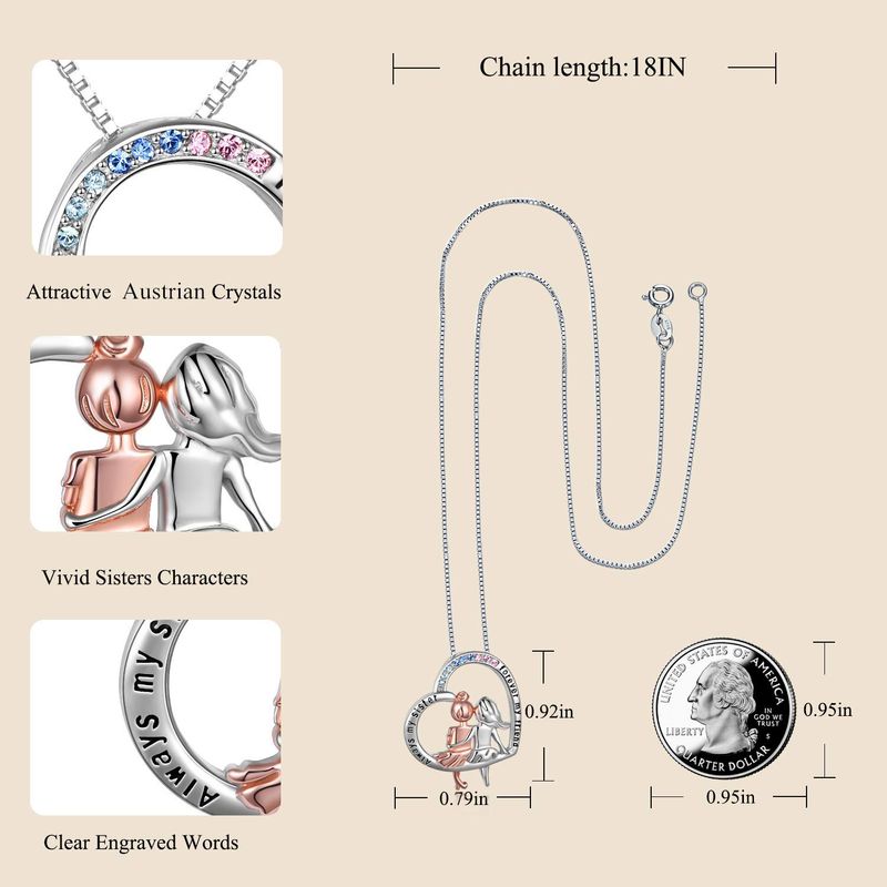 VONALA Sister Necklace 925 Sterling Silver Hear...