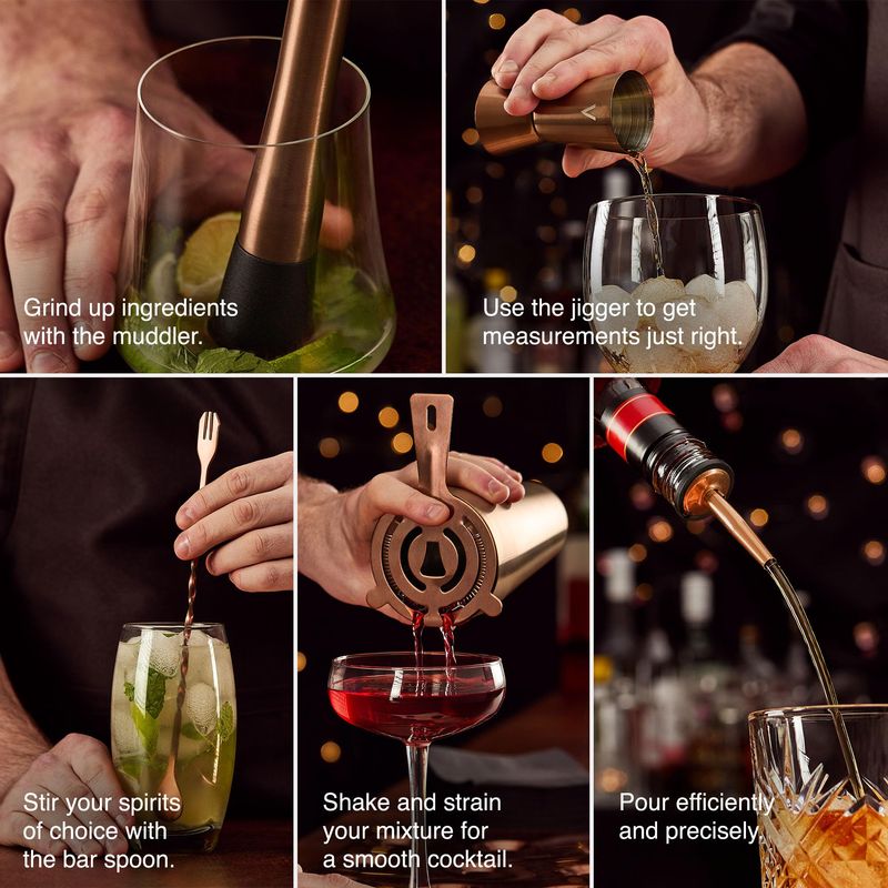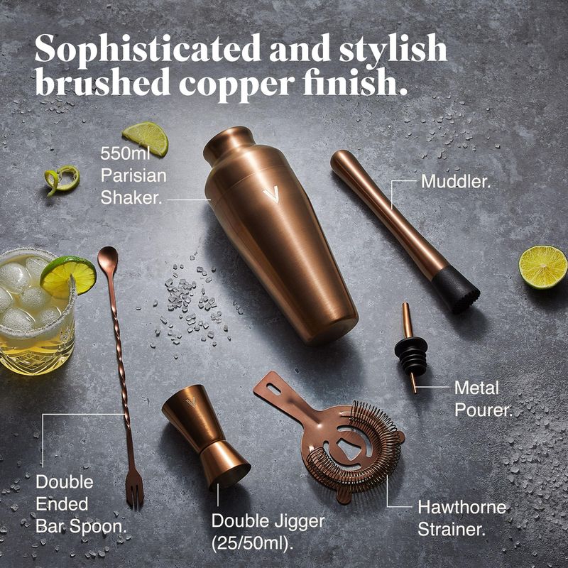 VonShef Cocktail Shaker Set, Copper 6pc Set wit...