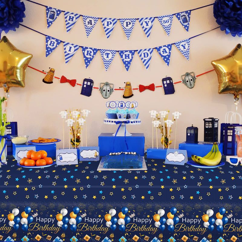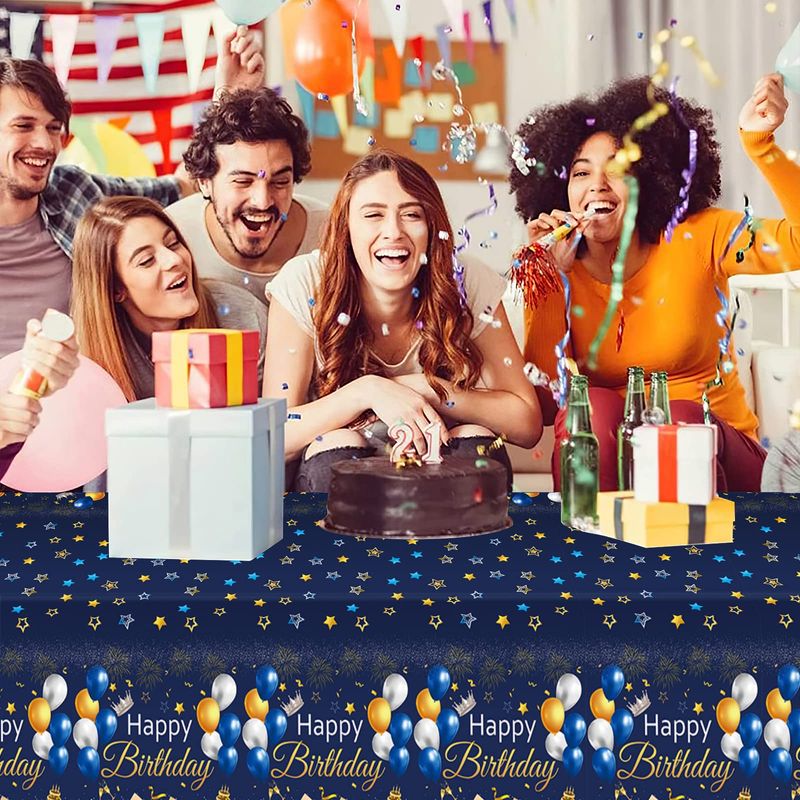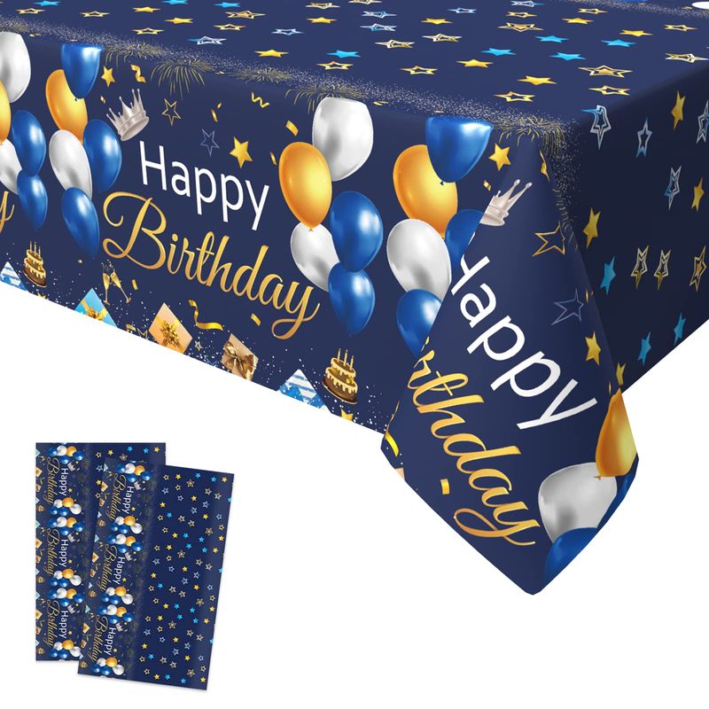 Xinvery 2PCS Blue Gold Party Tablecloth, Happy ...